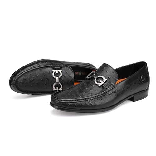 Black Luxury Men's Leather Dress Shoes, Fashion Classic Ostrich Printed Business Shoes Casual Buckle Party Wedding Penny Loafer Shoes for Men