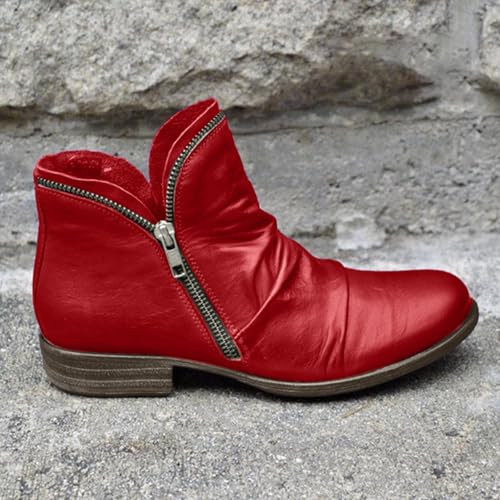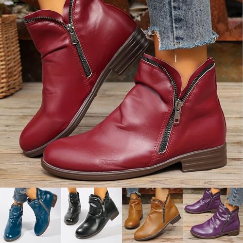 Ankle Boots for Women Arch Support Boots Side Zipper Vintage Leather Damping Shoes Flat Heel Booties Wide Width Orthopedic Comfortable Slip On High Top Business Dress Oxford Boot