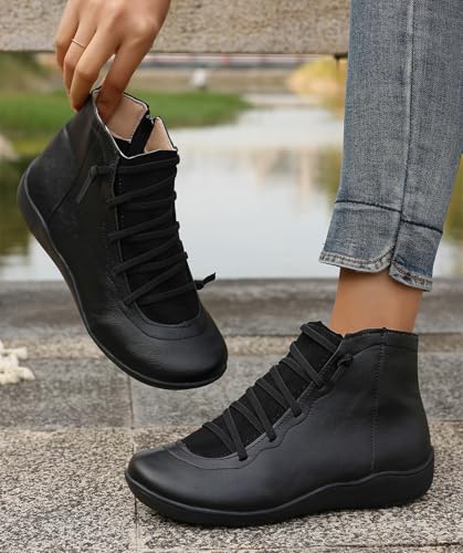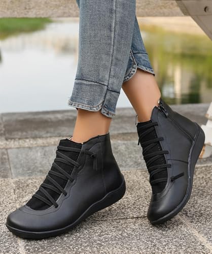 Women's Waterproof Combat Boots Casual Ankle Boots Fashion Round Toe Slip On Elastic Fall Booties Shoes