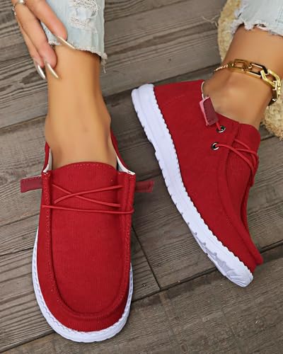 Women's Solid Color Canvas Shoes, Casual Lace Up Flat Loafers, Comfortable & Light-Weight Women's Daily Travel Shoes