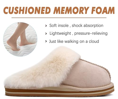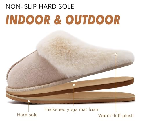 KuaiLu Womens Fluff Dual Memory Foam Slippers Ladies Cozy Arch Support Warm Scuff Slippers Slip on Comfy Winter House Shoes with Non-Slip Indoor Outdoor Hard Sole