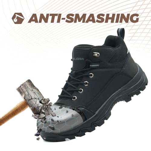 Waterproof Steel Toe Boots for Men Wide Width Non Slip Work Shoes Slip Resistant Safety Toe Sneakers Indestructible Construction Composite Toe Shoe Puncture Proof Footwear