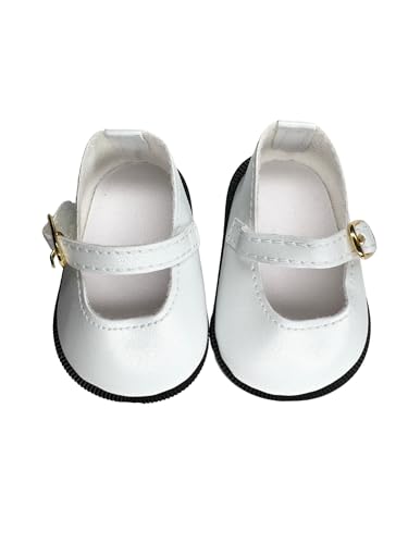 18" American Doll Shoes- Mary Jane Matte Black, Red, White, Pink, Shiny Black Shoe (18" Doll, White)