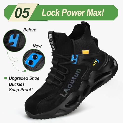 LAoutun Steel Toe Shoes for Men Work Shoes Safety Sneakers Comfortable Lightweight Puncture Proof Slip on Indestructible Construction Work Shoes