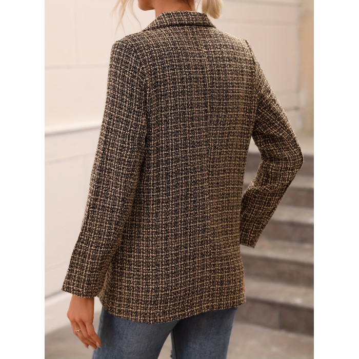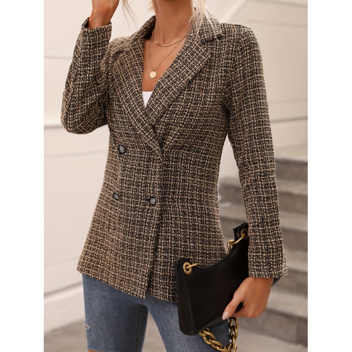 Women's Plaid Double Breasted Long Coat - Elegant Fall & Spring Outerwear