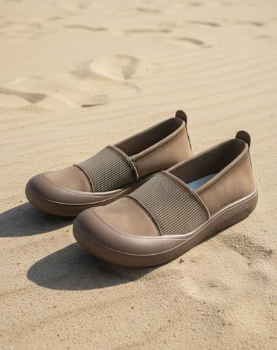 Women's Wide Toe Box Shoes,Barefoot Feel Flats, Slip-On Sneakers for Comfortable Walking and Running,Stylish & Durable Sport Shoes Brown
